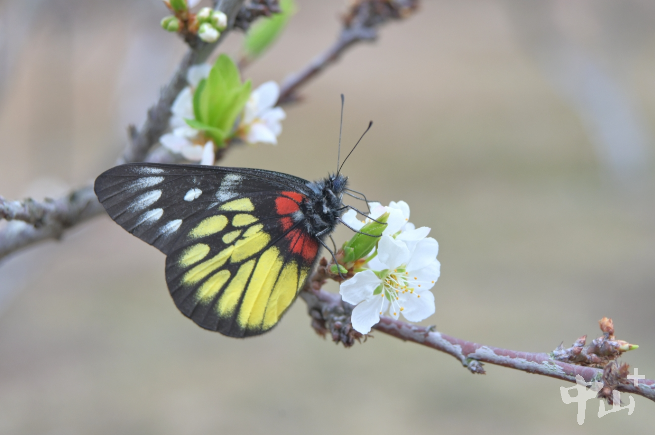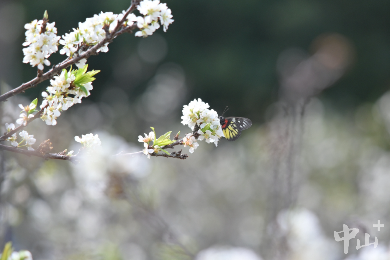 花叢中蜜蜂、蝴蝶紛飛