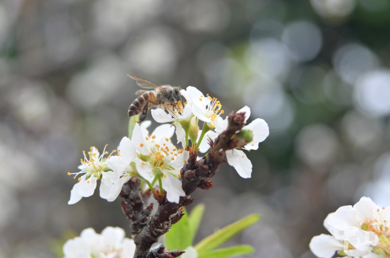 花叢中蜜蜂、蝴蝶紛飛