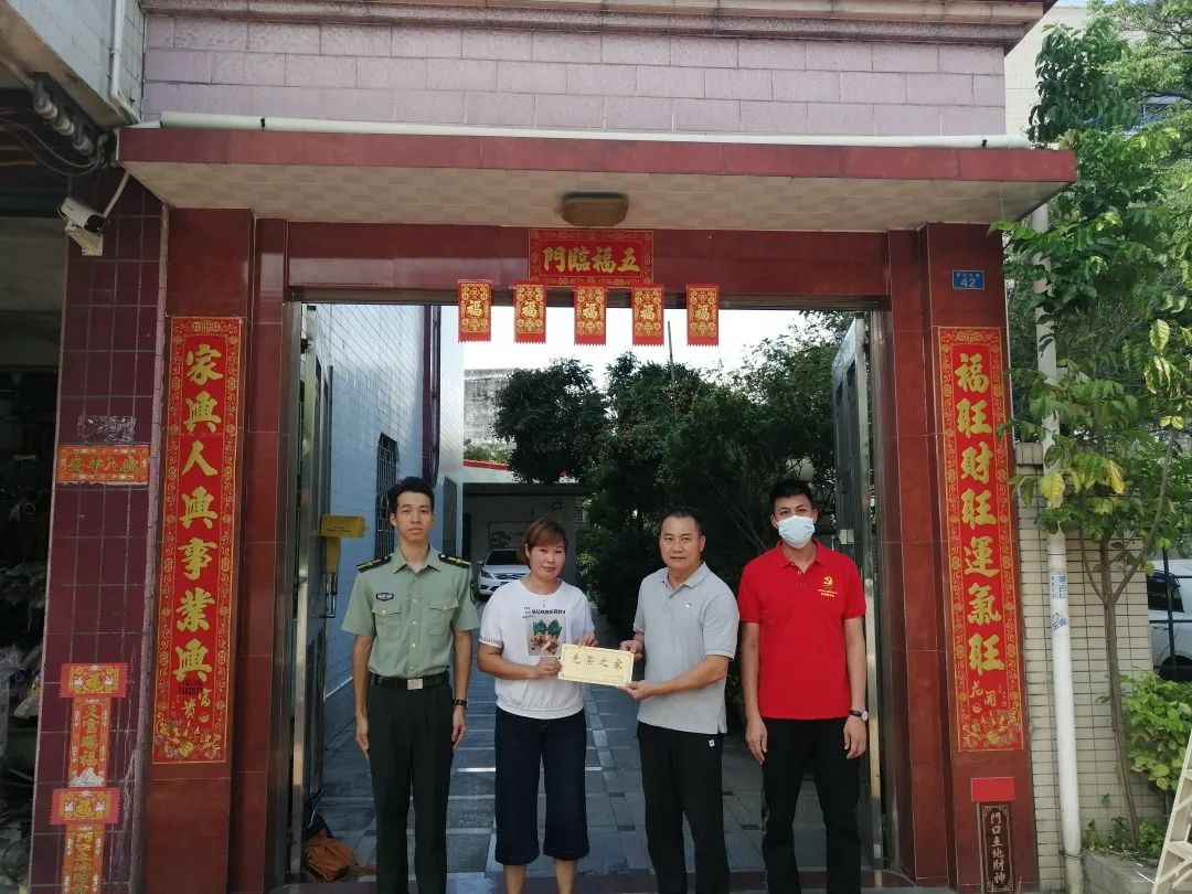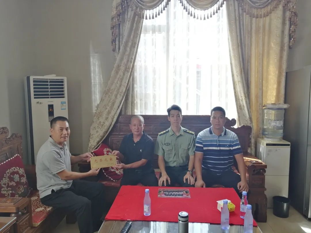 為進一步鞏固和發(fā)展軍政軍民團結,弘揚新時代擁軍優(yōu)屬的優(yōu)良傳統(tǒng),推進軍人榮譽體系建設,營造關愛軍人的濃厚社會氛圍,7月15日上午,阜沙鎮(zhèn)武裝部、退役軍人服務中心聯(lián)合走訪今年入伍的6名新兵家屬,為其家庭懸掛“光榮之家”門牌,送上入伍電子相冊,了解新兵在部隊的訓練、學習和生活情況,增強軍屬家庭的榮譽感和自豪感,讓他們切實感受到黨和政府的關愛和溫暖。 在新兵周志偉家中,其父親周錦元自豪地說:“雖然非常舍不得志偉離開我們,但是送他到部隊鍛煉,為國家作貢獻,心里還是很高興的,也非常自豪。今天你們來給我家掛光榮牌、送相冊,我們全家心里暖暖的,非常感謝黨和政府對我們的關心?!?/p>一人參軍,全家光榮 一塊刻著“光榮之家”的小小牌匾 對軍屬家庭來說卻是一份特殊的“禮物” 牌匾雖小