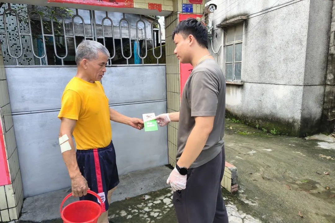 在部隊(duì)曾擔(dān)任副班長(zhǎng)的他,對(duì)防疫工作格外上心,總想著把各項(xiàng)措施落實(shí)到位。走進(jìn)村民家中,他一邊跟村民嘮家常,一邊念叨著防疫要點(diǎn)。為了讓老年村民更容易理解,孫桂濱把 “基孔肯雅熱” 簡(jiǎn)稱為 “雅熱”:“不想中‘雅熱’就得防蚊蟲叮咬。沒積水就沒蚊蟲,沒蚊蟲就沒‘雅熱’啦!” 說著就幫村民檢查起家中的積水情況。