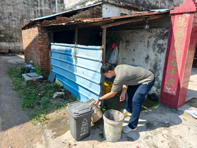 南朗街道吹響“全民滅蚊”集結號后,街道民兵和退役軍人聞令而動,兵分兩路深入一線:一組走街串巷,深入居民家中,用通俗語言講解基孔肯雅熱、登革熱的危害和防控核心知識“清積水、滅成蚊、防叮咬”,發(fā)放宣傳資料,指導清理積水容器和使用防蚊用品,提升全民參與意識和自我防護能力,也激發(fā)廣大群眾投身參與愛國衛(wèi)生運動的熱情,營造全民共建共享健康生活環(huán)境的良好氛圍。