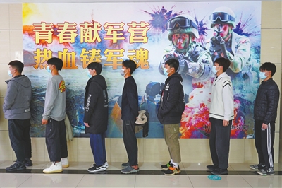 在體檢集合處,“參軍報(bào)國(guó),無(wú)上光榮”等字眼隨處可見(jiàn)。