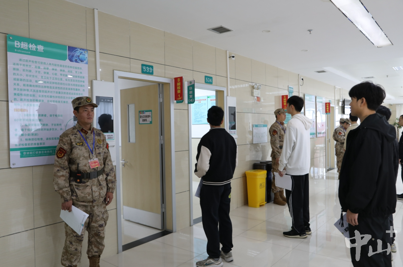 1月20日,中山市2024年上半年征兵體檢在火炬開發(fā)區(qū)人民醫(yī)院開啟,預(yù)計(jì)體檢時(shí)間將持續(xù)2周以上。 早上7時(shí)許,在火炬開發(fā)區(qū)人民醫(yī)院門診五樓,中山市征兵辦工作人員對(duì)照名冊開始人員清點(diǎn)。中山市征兵體檢隊(duì)總檢醫(yī)生李燦永介紹,此次征兵體檢面向全市所有鎮(zhèn)街,上站青年預(yù)計(jì)有1500人左右,其中大學(xué)畢業(yè)生有800人左右。當(dāng)天有100多名大學(xué)畢業(yè)生參加上站體檢,體檢項(xiàng)目有外科、內(nèi)科、心電圖等多個(gè)項(xiàng)目。 應(yīng)征青年排隊(duì)體檢。記者 王云 攝