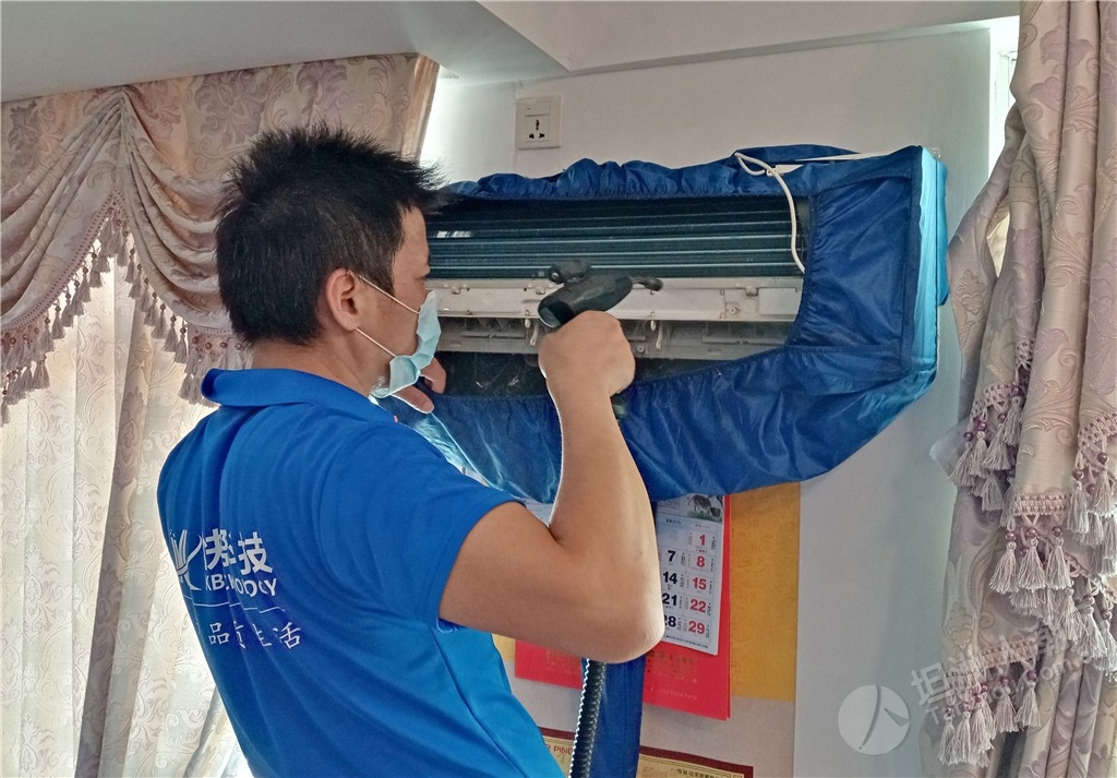 上午9時許,20名志愿者如約而至,來到坦洲鎮(zhèn)退役軍人服務(wù)中心,天空雖然下起了陣雨,卻絲毫沒有阻擋他們的服務(wù)熱情。志愿者們按照預(yù)約名單,合理分工,有序入戶優(yōu)撫對象家中,依次進行空調(diào)電路檢測、制冷功能運轉(zhuǎn)試行、內(nèi)置空調(diào)機表層清潔、過濾網(wǎng)(換熱器)清洗等工作環(huán)節(jié),保證空調(diào)能夠在長期放置的情況下正常啟動、安全運轉(zhuǎn),恢復(fù)健康、清新的空氣環(huán)境,保障他們身體健康和生命安全。