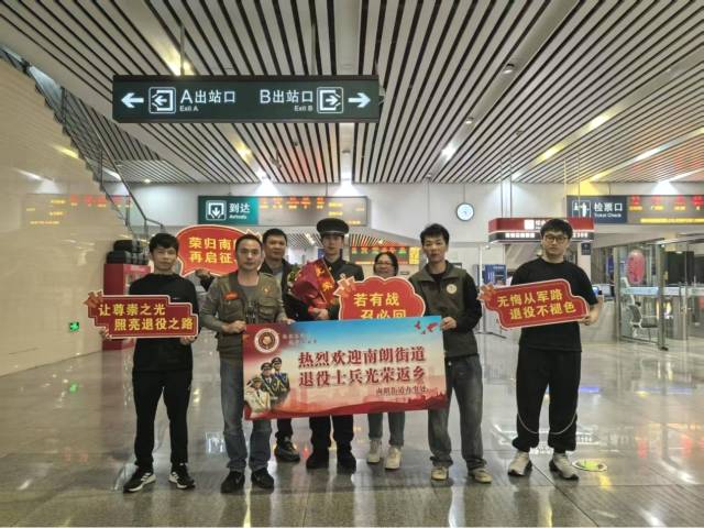 精心組織,讓榮歸之路更有溫度 當(dāng)天,街道退役軍人服務(wù)中心工作人員早早守候在出站口,現(xiàn)場(chǎng)“熱烈歡迎退役士兵光榮返鄉(xiāng)”“榮歸南朗 再啟征程”等橫幅高懸,氣氛莊重而溫馨。當(dāng)身著戎裝、英姿颯爽的退役士兵陸續(xù)走出抵達(dá)通道,等候多時(shí)的工作人員與家屬立即上前,獻(xiàn)上鮮花、披上綬帶,用熱烈的掌聲和親切的問(wèn)候迎接最可愛(ài)的人回家?!靶量嗔?!”“歡迎回家!”一句句暖心話(huà)語(yǔ),驅(qū)散了旅途疲憊,更讓尊崇之光閃耀歸途。 工作人員與退役士兵促膝交談,詳細(xì)詢(xún)問(wèn)服役經(jīng)歷、旅途行程與返鄉(xiāng)規(guī)劃,向他們致以崇高敬意,衷心感謝他們把最美好的青春奉獻(xiàn)給國(guó)防事業(yè),用忠誠(chéng)與擔(dān)當(dāng)守護(hù)萬(wàn)家安寧。 精準(zhǔn)服務(wù),讓政策落地更有速度 為打通服務(wù)保障“最后一公里”,迎接現(xiàn)場(chǎng)同步設(shè)立政策咨詢(xún)點(diǎn),工作人員為每位返鄉(xiāng)士兵送上“政策大禮包”,面對(duì)面講解退役軍人優(yōu)待撫恤、就業(yè)創(chuàng)業(yè)扶持、報(bào)到落戶(hù)流程、社會(huì)保險(xiǎn)接續(xù)、組織關(guān)系轉(zhuǎn)接、優(yōu)待證辦理等“一站式”服務(wù)事項(xiàng),耐心細(xì)致解答疑問(wèn),確保退役士兵“出站即知政策、返鄉(xiāng)即享服務(wù)”,讓暖心服務(wù)貫穿榮歸全程。 “沒(méi)想到剛下飛機(jī)就有家鄉(xiāng)人迎接,還送來(lái)了這么詳細(xì)的政策指引,太貼心了!”退役士兵們表示,脫下軍裝仍是戰(zhàn)士,回到家鄉(xiāng)將繼續(xù)發(fā)揚(yáng)人民軍隊(duì)聽(tīng)黨指揮、能打勝仗、作風(fēng)優(yōu)良的光榮傳統(tǒng),盡快轉(zhuǎn)變角色、適應(yīng)新崗,以飽滿(mǎn)熱情投身家鄉(xiāng)建設(shè),在新的征程上再立新功。