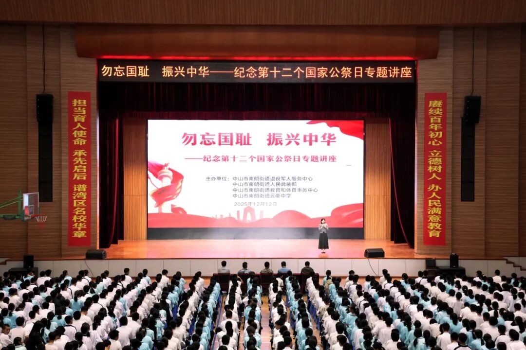 以史為鑒,砥礪前行。在第十二個(gè)南京大屠殺死難者國(guó)家公祭日即將到來(lái)之際,12月12日下午,中山南朗街道人民武裝部、退役軍人服務(wù)中心聯(lián)合南朗街道教育和體育事務(wù)中心在中山紀(jì)念中學(xué)教育集團(tuán)云衢中學(xué)開(kāi)展愛(ài)國(guó)主義教育,700余名師生齊聚一堂,緬懷遇難同胞、傳承愛(ài)國(guó)精神。