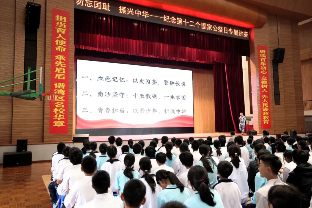 活動(dòng)邀請(qǐng)中山港口鎮(zhèn)人民武裝部副部長(zhǎng)賀洪彪以《銘記歷史守海疆 青春立志報(bào)家國(guó)》為題開(kāi)展專(zhuān)題講座,帶領(lǐng)師生重溫南京大屠殺那段山河破碎的屈辱歷史,闡釋國(guó)家公祭日的設(shè)立意義,讓師生深刻理解“銘記歷史、勿忘國(guó)恥”的意義。現(xiàn)場(chǎng)莊嚴(yán)肅穆,全體師生為南京大屠殺死難同胞默哀,用無(wú)聲的敬意寄托對(duì)逝者的哀思。 會(huì)上,賀洪彪結(jié)合自身十五載南沙守礁經(jīng)歷,講述“以礁為家、以苦為榮”的崢嶸歲月,用軍人的忠誠(chéng)與信仰,詮釋新時(shí)代國(guó)防衛(wèi)士守護(hù)家國(guó)的責(zé)任擔(dān)當(dāng),讓師生們真切感受到和平生活的來(lái)之不易。