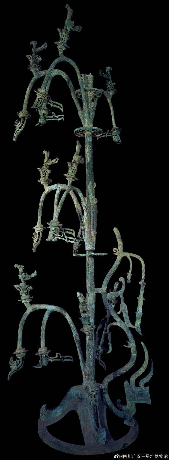 三星堆二號(hào)祭祀坑出土的青銅神樹。圖據(jù)三星堆博物館