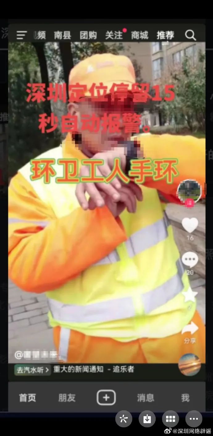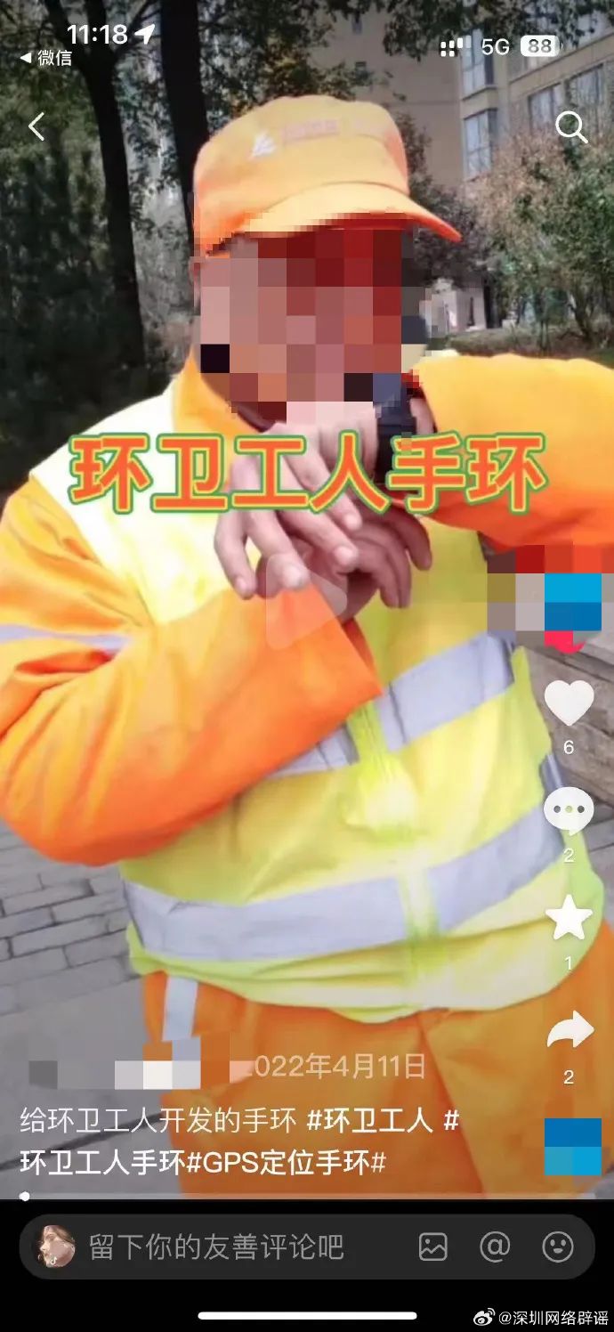 近日,網(wǎng)傳“深圳環(huán)衛(wèi)工人佩戴的定位手環(huán)停留15秒后將自動報警”,記者從深圳市城市管理和綜合執(zhí)法局了解到,該情況不屬實。傳言中圖片是2022年4月11日上傳的定位手環(huán)功能介紹視頻的視頻封面,于近日被添加了“深圳定位停留15秒自動報警”文字并上傳至新媒體平臺傳播,對深圳環(huán)衛(wèi)行業(yè)造成不良社會影響。