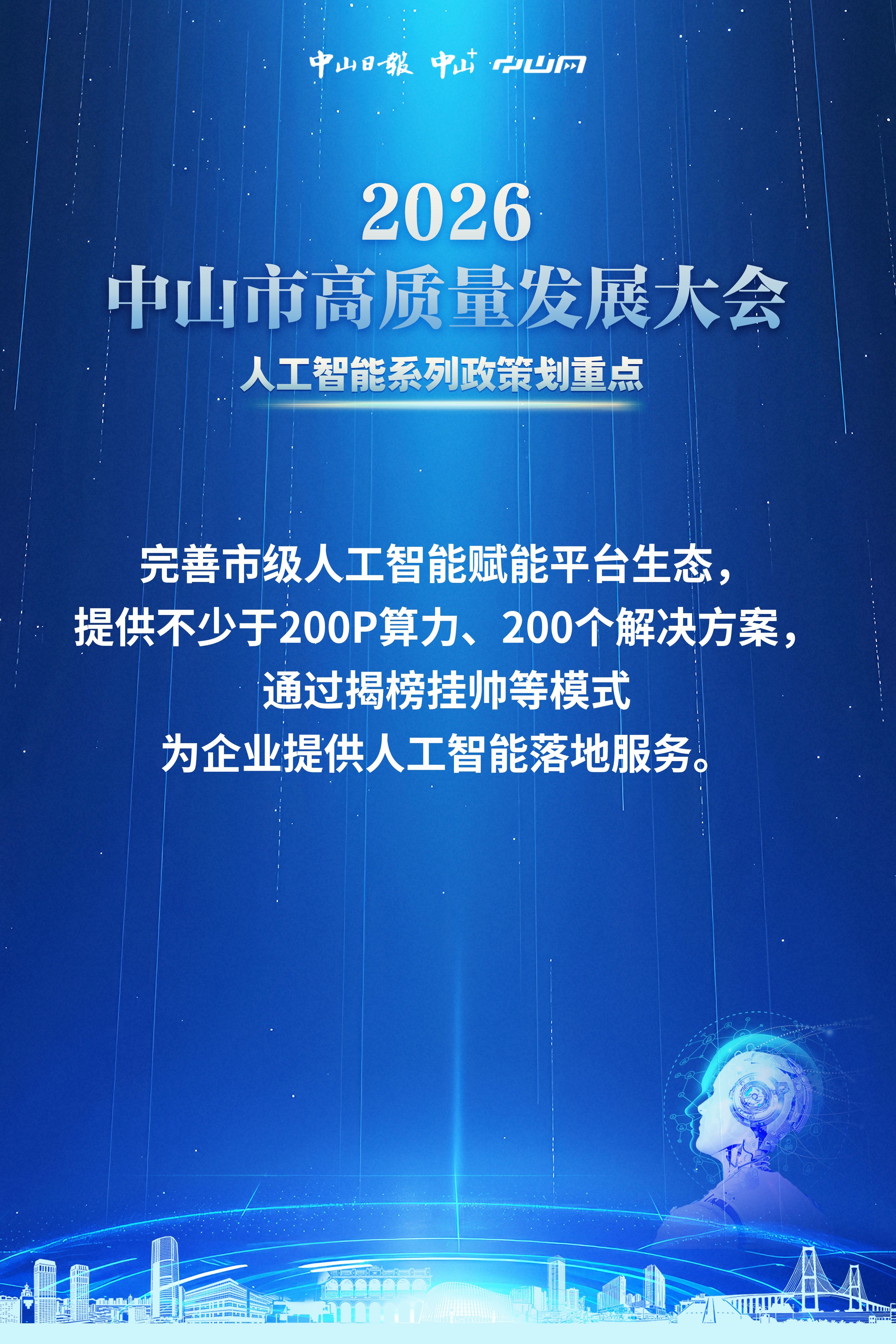 2月24日下午,2026年春節(jié)假期后開(kāi)工第一天,中山召開(kāi)全市高質(zhì)量發(fā)展大會(huì),會(huì)上發(fā)布了人工智能系列政策,具體有哪些重要內(nèi)容?一組海報(bào)帶你劃重點(diǎn)↓↓↓