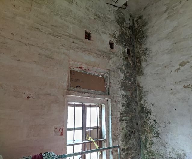 當天下午,兩名向日葵社工來到了阿耿家中,阿耿看到社工的到來,仿佛看到了希望的曙光。阿耿家非常的破舊,是一幢年久失修的紅磚房,門窗都是木頭制成的,已經(jīng)破爛不堪。進到房子里面,看到阿耿現(xiàn)在是把廚房用具搬到了客廳,本來就小的客廳顯得更加的擁擠。幾句寒暄過后,阿耿帶社工去到出現(xiàn)漏水情況的房間,一進到房間,社工就發(fā)現(xiàn)房間墻身已經(jīng)出現(xiàn)了非常嚴重的發(fā)霉情況,甚至有部分墻壁還長出了青苔,阿耿說:“這已經(jīng)出現(xiàn)很長一段時間了,前段時間下雨,墻壁一直滲水,這個房間原本是我住的房間,因為滲水情況越來越嚴重,就搬到旁邊原來作為廚房的房間居住,而且窗戶的玻璃都已經(jīng)全部掉落了,現(xiàn)在這個房間已經(jīng)完全不能住人了?!卑⒐⒄f完,就告訴社工還有另一處漏水的地方??吹搅硪惶幝┧牡胤?,社工發(fā)現(xiàn)墻壁因長期滲水導致墻面剝落且墻體分離,到處都是霉斑。阿耿表示,這是漏水情況最嚴重的房間,房子的其他地方也出現(xiàn)了不同程度的漏水,隨后,阿耿把社工帶到客廳,把其他漏水的地方和情況也向社工反饋。社工看到阿耿現(xiàn)在居住在如此破爛的房子,不禁感到一陣酸楚,同時也跟阿耿商討著怎樣去解決漏水的問題。