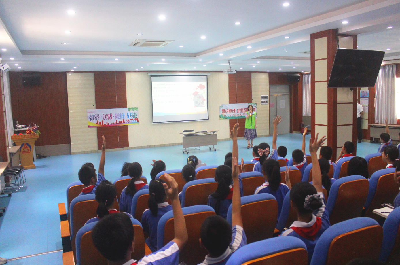 活動中,老師向現(xiàn)場學(xué)生詳細講解了虎門銷煙的歷史背景及事件始末,班主任、科任老師組織學(xué)生云觀看2021年廣東省6.3虎門銷煙182周年紀(jì)念日活動。隨后,通過問答互動的形式讓同學(xué)們加深對虎門銷煙歷史事件的認識及掌握毒品知識。最后,老師帶領(lǐng)全體學(xué)生舉行了莊嚴(yán)的宣誓儀式,全體師生用堅定的聲音表達了堅決抵制毒品的態(tài)度和決心。