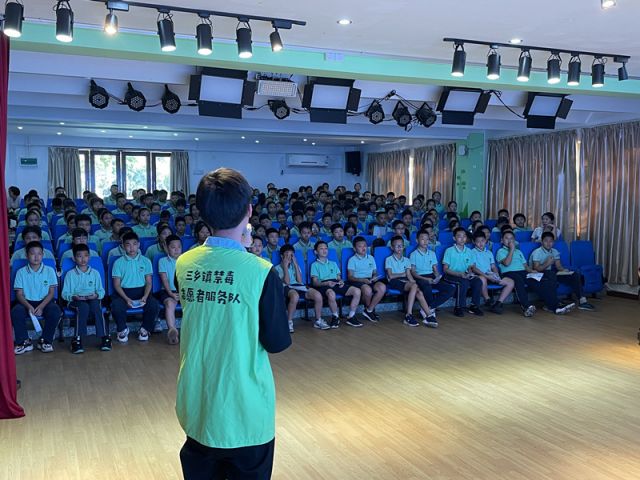 為進(jìn)一步加強(qiáng)學(xué)校禁毒宣傳教育工作,預(yù)防和減少青少年涉毒違法犯罪,讓學(xué)生從思想上樹(shù)立禁毒、識(shí)毒、拒毒、防毒、遠(yuǎn)離毒品的意識(shí)。9月7日,三鄉(xiāng)鎮(zhèn)禁毒辦、三鄉(xiāng)鎮(zhèn)禁毒社工服務(wù)中心聯(lián)合鎮(zhèn)文體教育局開(kāi)展“遠(yuǎn)離毒品,呵護(hù)未來(lái)”為主題的“禁毒第一課”,與學(xué)校共筑防毒墻,共建平安校園。