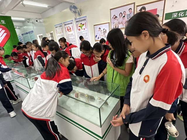 活動現(xiàn)場,禁毒社工帶領學生們進入禁毒教育基地,通過通俗易懂的語言,為學生們講解了中國禁毒史、毒品的種類、毒品對人器官的危害等知識。活動中,部分學生對毒品仿真品表現(xiàn)出濃厚興趣,他們相互觀察、深入交流新型毒品的偽裝包裝樣式與特征。通過這些互動環(huán)節(jié),有效激發(fā)了學生們學習禁毒知識的熱情,促使他們樹立起“健康認知,綠色無毒”的正確理念。