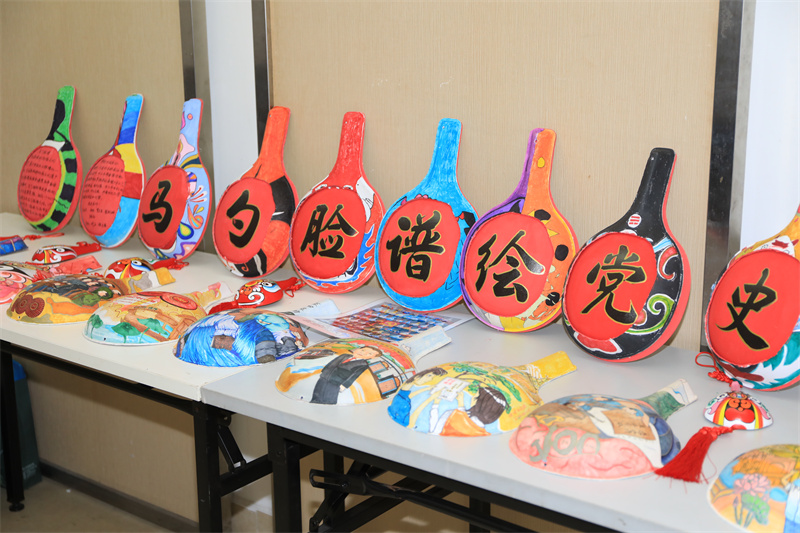 中國共產(chǎn)黨成立100周年標識、井岡山勝利會師、南昌起義、嘉興游船上舉行的中共一大、萬里長征路……分享會現(xiàn)場,刻畫了一個個黨史故事的木瓢排列成行,十分引人注目?!斑@是國家級非物質(zhì)文化遺產(chǎn)——馬勺臉譜。它是陜西的傳統(tǒng)民間藝術(shù),以馬勺作‘紙’,將社火臉譜以彩繪的形式繪制在上面?!瘪R勺臉譜傳承者、沙溪中學老師馬世杰介紹。作為一名美術(shù)老師,馬世杰通過民間藝術(shù)的再創(chuàng)新來引導學生學習黨史,在他的帶領(lǐng)下,沙溪中學的學生將南粵特色、中山元素、國風動漫等融入馬勺臉譜的創(chuàng)作中。“繪制黨史故事前,我們查閱了大量資料,并向?qū)<覍W者請教,在創(chuàng)作中引導學生們了解、學習黨史?!?/p>